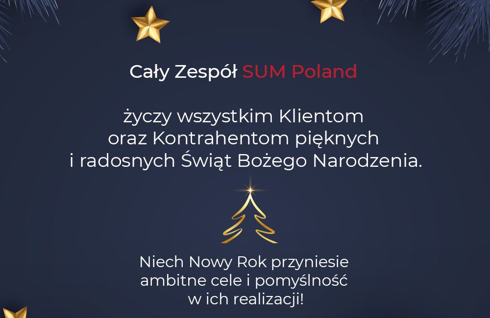 Grudzień zwykle przychodzi z refleksją o mijającym roku. Uwalnia też nadzieje związane z planami na ten nadchodzący, Nowy Rok. W SUM Poland mamy ich mnóstwo i tyleż samo zapału, by je zrealizować. ✵ ✵ ✵ W tym świątecznym nastroju składamy Państwu serdeczne życzenia wszelkiej pomyślności, niepowtarzalnej atmosfery,ciepła oraz obfitości wszelkich...