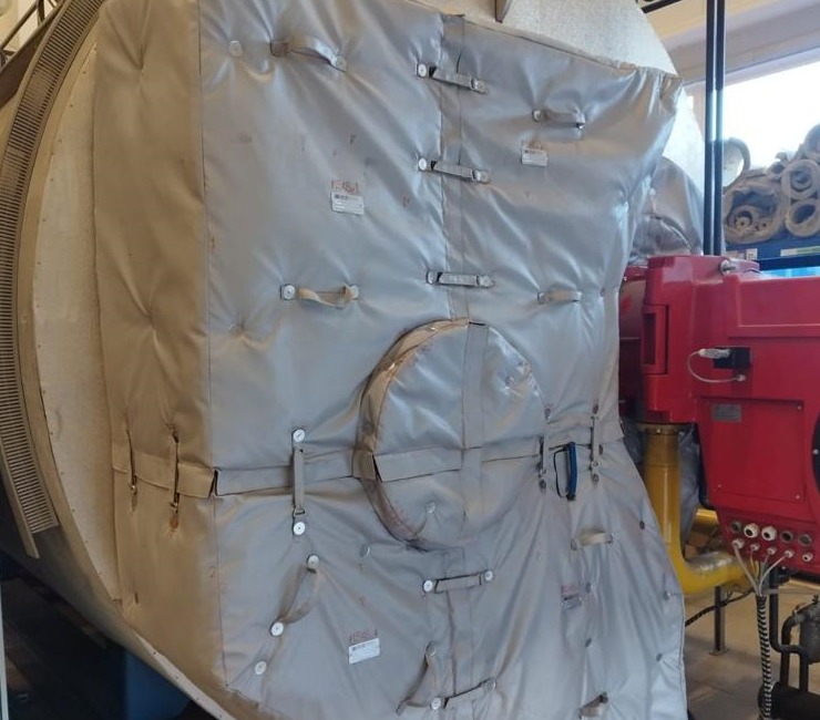 Już wcześniej udowodniliśmy, że duże gabaryty nie są dla nas żadną przeszkodą czy wyzwaniem. Montowaliśmy między innymi pokrowce na rurociągach w komorach ciepłowniczych, których DN dochodziło do 1 200 mm!!!!! A na zdjęciu poniżej prezentujemy ostatnie zlecenie, gdzie obwód urządzenia wymagał po prostu większej krzepy i wysiłku naszych monterów przy...